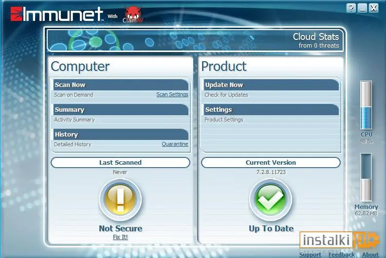 Immunet Antivirus Free darmowy antywirus działający w oparciu o technologię Cloud Computing (podobnie jak Panda Cloud Antivirus), czyli zużywa niewielką ilość zasobów systemu operacyjnego, a w momencie wykrycia szkodnika, przesyła automatycznie podejrzany plik do serwera producenta – w celu sprawdzenia jego poziomu zagrożenia.