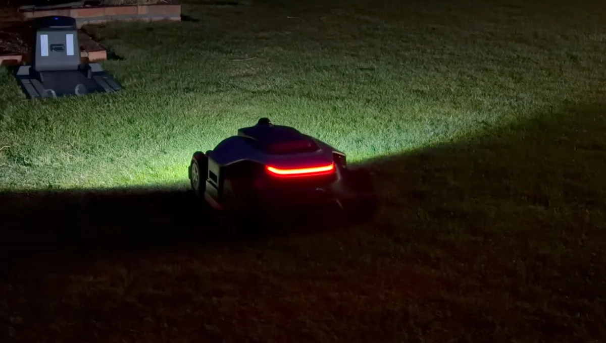 Na froncie w oczy rzuca się solidne oświetlenie, lampka zapala się podczas pracy po zmroku. Są tu również styki ładowania oraz kamera przednia, z której możemy skorzystać podczas monitorowania posesji. Z tyłu umieszczono efektowne czerwone światło, które nadaje charakteru całej konstrukcji.