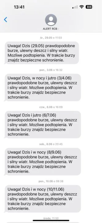 Mamy sezon burzowy, więc częstotliwość powiadomień wysyłanych poprzez Alert RCB może jeszcze wzrosnąć – niektórzy mogą dostawać je nawet codziennie.