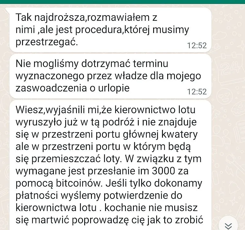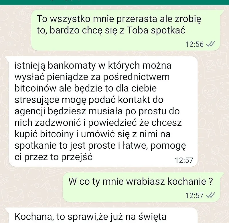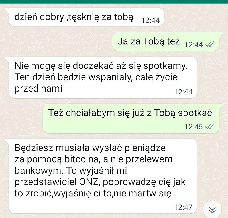 Nie muszę chyba mówić, jaki finał miał internetowy romans naiwnej kobiety. Do spotkania nie doszło, a oszust przestał odpisywać na wiadomości. Stara metoda nadal działa, a WhatsApp w dalszym ciągu jest chyba największym siedliskiem wszelkiej maści przestępców.