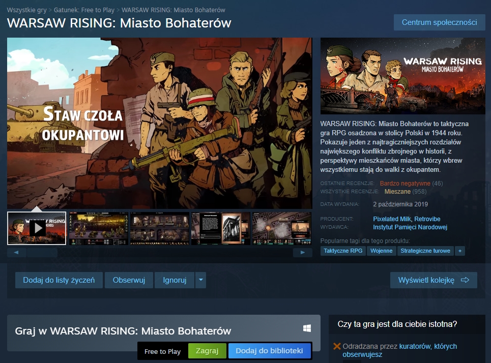 Tytuł natomiast udostępniono zupełnie za darmo i zmieniono nazwę na WARSAW RISING: Miasto Bohaterów. To wszystko przecież brzmi super, co więc skrytykowano? Cóż, oprócz dodania wielu rzeczy usunięto także warstwę strategiczną gry, która „nie wpisywała się w nowy sposób przedstawienia fabuły gry”. Klientom się to nie spodobało – zwłaszcza tym, którzy przecież wydali nieco złotówek na zakup produkcji.