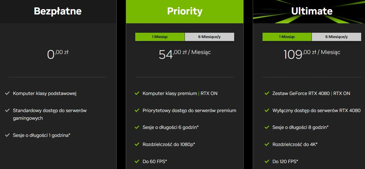 NVIDIA GeForce NOW to jedna z najpopularniejszych platform oferujących streaming gier. Sposób jej działania niestety odstrasza część konsumentów, bowiem najpierw należy samemu kupić cyfrową wersję wybranej produkcji, a dopiero potem skorzystać z usługi. Jeśli zależy Wam na najwyższej jakości, długich sesjach oraz wchodzeniu bez kolejki, to należy dodatkowo opłacić subskrypcję.