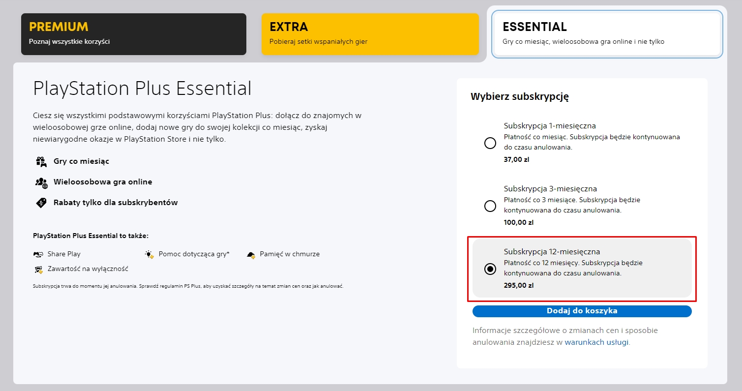 - Essential oferuje darmowe gry co miesiąc, opcję zabawy po sieci oraz specjalne rabaty dla subskrybentów. Poza tym mówimy o dostępie do Share Play, pomocy dotyczącej gry, pamięci w chmurze czy zawartości na wyłączność,