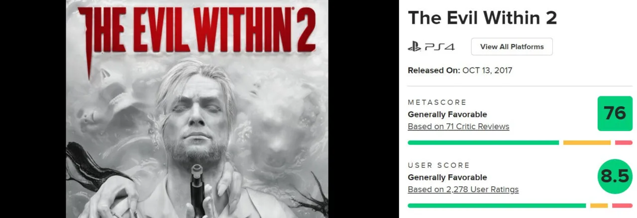 Na portalu Metacritic tytuł może pochwalić się średnią ocen 8.5 od graczy, więc jest bardzo dobrze. Osoby niemające więc jeszcze okazji przechodzić „dwójki” mają teraz niepowtarzalną okazję, by nadrobić zaległości. Warto się jednak pospieszyć, bowiem The Evil Within 2 jest dostępne wyłącznie do 2 listopada do godziny 16:59.