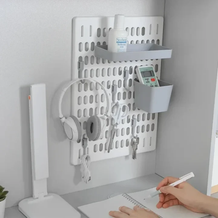 Z czasem na biurku zaczyna się pojawiać coraz więcej przedmiotów. Zapanować nad chaosem pomoże samoprzylepny organizer w formie tablicy z otworami. Na aukcji znajdziemy również pozostałe przydatne akcesoria (pudełka, haczyki).