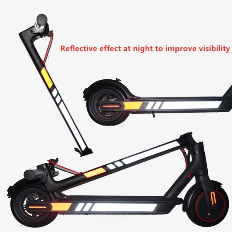 Odblasków nigdy dość. Dzięki nim miejskie podróże stają się o wiele bezpieczniejsze. Poprawa widoczności naszej hulajnogi nie musi wiązać się z koniecznością trudnego montażu dodatkowych elementów. Wystarczą specjalnie przygotowane naklejki odblaskowe. Pasują praktycznie do każdej hulajnogi.