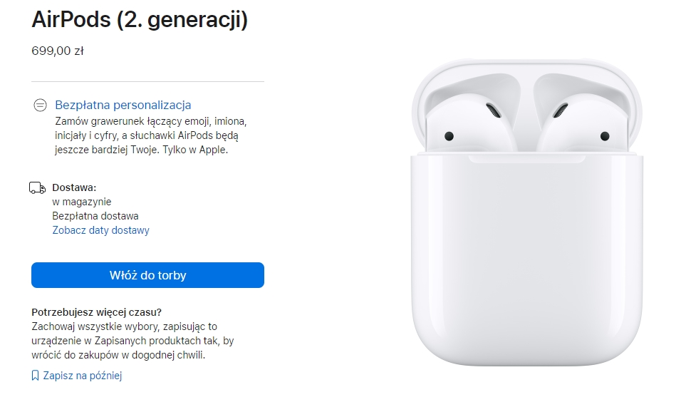 - AirPods (3. generacji) – 929 złotych, 979 złotych (etui ładujące MagSafe),