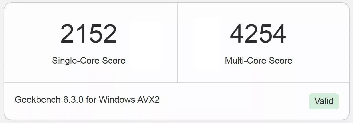Moc obliczeniowa układu Intel Processor 310 pozwoliła mu osiągnąć wynik na poziomie 2152 w teście pojedynczego rdzenia i 4254 punktów w pomiarze wydajności wszystkich rdzeni. Wynik może wydawać się niewielki, ale to wciąż lepszy rezultat od dwurdzeniowego Intel Processor N50 oraz czterordzeniowego Intel Processor N97. Jak już wspomniałem, to wyniki lepsze od osiąganych przez Intel Core i3-10100, więc widać tu postęp, jaki dokonał się na przestrzeni lat.