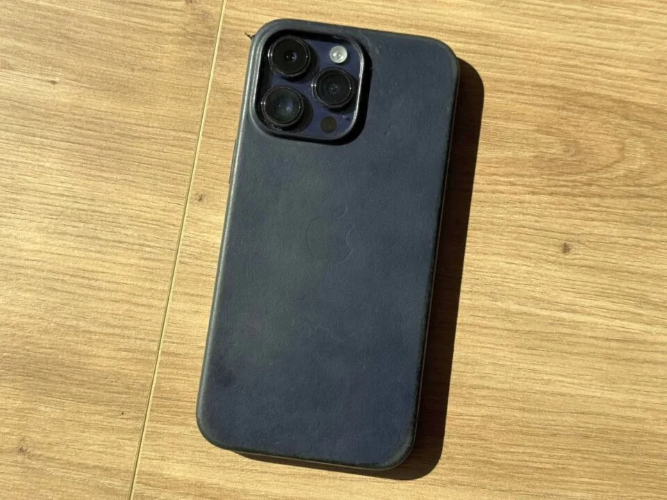 Nie tego spodziewałem się po wariancie premium etui Apple FineWoven. Moje skórzane etui dla iPhone 14 Pro Max po roku NAPRAWDĘ intensywnego korzystania wygląda niemal jak nowe – jest tylko przybrudzone. Niemal jak nowe, bo ostatnio grzmotnęło o beton i nastąpiło uszczerbienie skóry na jednym z jej rogów oraz ma lekkie przetarcia na krawędziach, co wydaje się normalne.