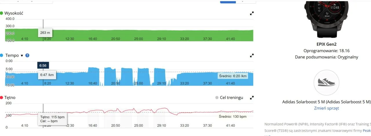 Zacząłem kombinować ze zmianą oprogramowania na soft beta. Początkowo wydawało mi się, że Garmin Fenix 7S Ani zaczął działać lepiej. Mój zegarek trafił na gwarancję w związku z martwym pikselem na ekranie, przy czym zgłosiłem też problem z zaniżonym pomiarem tętna. Z czasem zorientowałem się jednak, że nadzieje były płonne, a pomiar nadal pozostawiał wiele do życzenia. Co najciekawsze: nie pomogło nawet sięgnięcie po opaskę HRM – zewnętrzny czujnik również prezentował niepoprawne dane. Z dalszych pomiarów z opaską zrezygnowałem z prostej przyczyny: nie mam ochoty z niej korzystać, skoro przez ponad rok korzystania z mojego smartwatcha pomiar z nadgarstka nie odstawał wartościami od tego z opaską w sposób istotny.