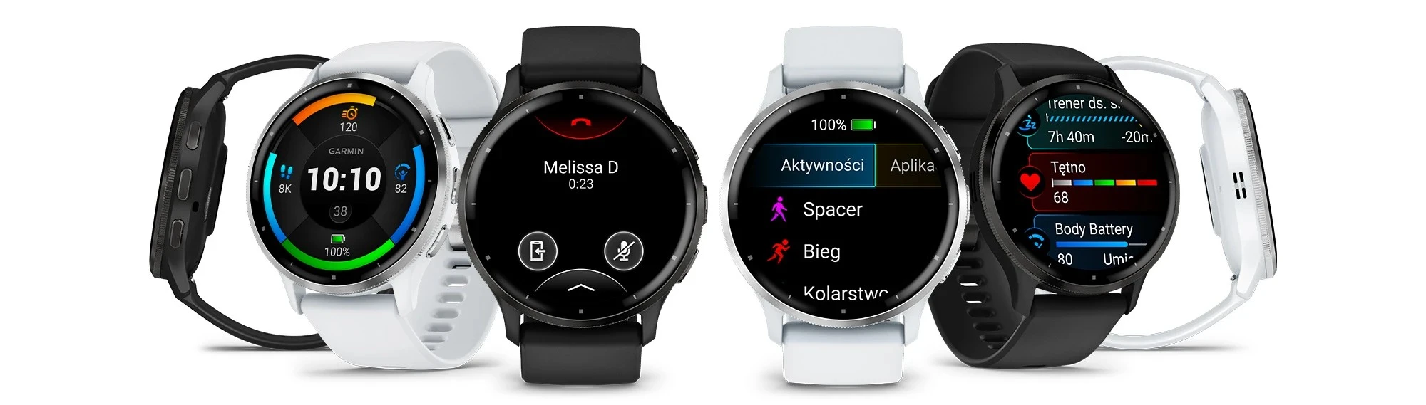 Lekkie smartwatche z bezelem ze stali nierdzewnej i silikonowym paskiem z serii Venu 3 dostępne są w zestawieniach kolorystycznych Whitestone/Silver oraz Black/Slate, a mniejszy Venu 3S w kolorach Pebble gray/Slate, Sage gray/Silver, French gray/Soft gold, Dust rose/Soft gold i Ivory/Soft gold.