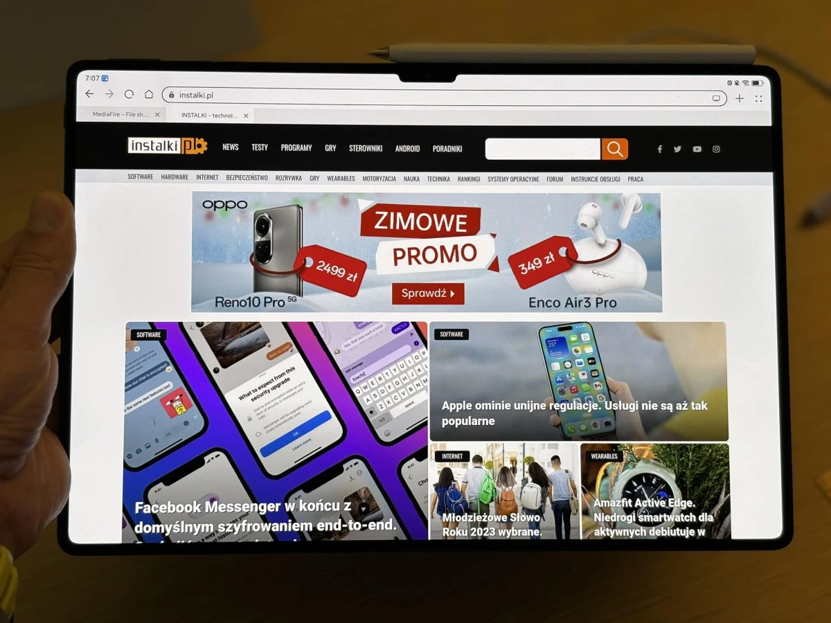 Ten tablet zamknięto w obudowie o grubości 5,5 mm. Wyświetlacz OLED zajmuje 94% jego przedniej powierzchni, jako że grubość otaczających go ramek to z kolei 3,4 mm.