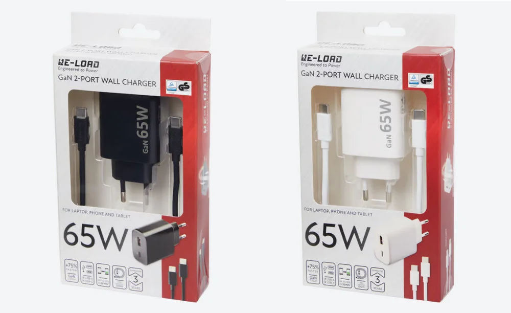 Ładowarka marki Re-load sprzedawana jest w dwóch kolorach (czarny oraz biały) i charakteryzuje się kompaktowymi wymiarami. Co więcej, na obudowie znajdziemy dwa wszechstronne porty (USB-C i USB-A), a oznacza to, że nic nie stoi na przeszkodzie, aby jednocześnie zasilać aż dwa urządzenia.