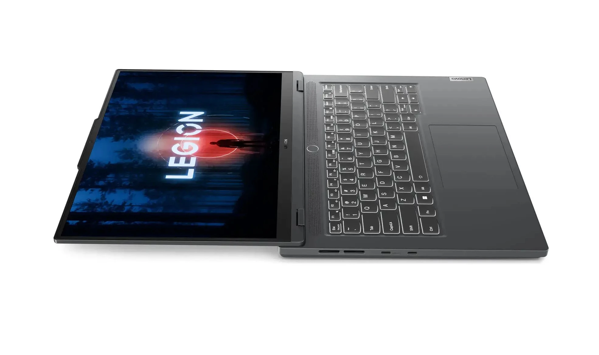 Z podświetlanej klawiatury TrueStrike notebooka Lenovo korzysta się naprawdę przyjemnie nie tylko przez to, że nie rozgrzewa się nawet w trakcie streamowania, grania lub obrabiania zdjęć. Jest ładnie podświetlana, a klawisze są wygodne. Skok klawiszy wynoszący 1,5 mm, odpowiednie odstępy pomiędzy klawiszami i responsywna płytka dotykowa mogą się podobać.