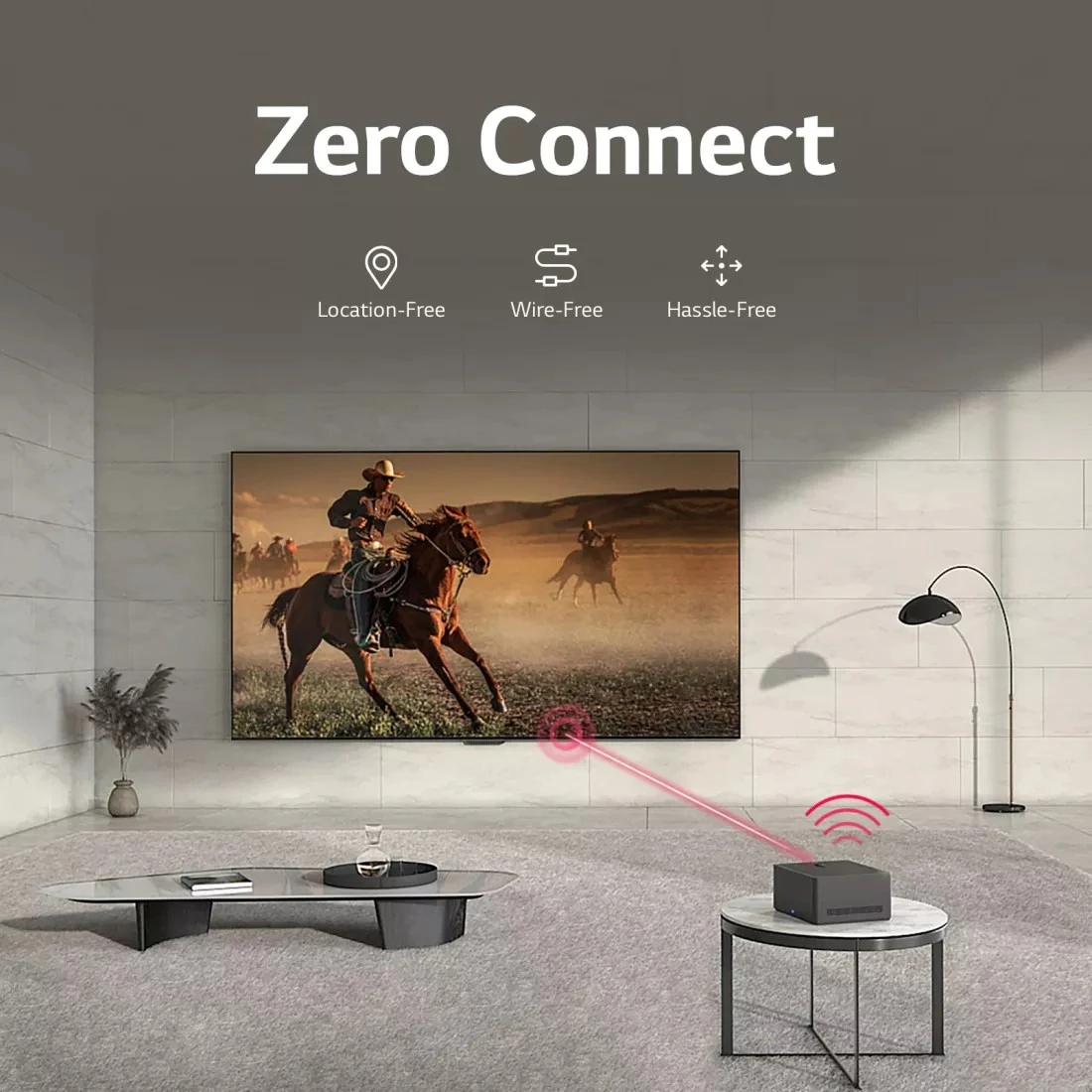Firma LG zapewnia także bezproblemową instalację i konfigurację. Sprzęt umożliwia bezprzewodowe wysyłanie i odbieranie sygnałów przy użyciu technologii LG Zero Connect Box. Może ona przesyłać obraz i dźwięk 4K o częstotliwości 120 Hz na ekran.