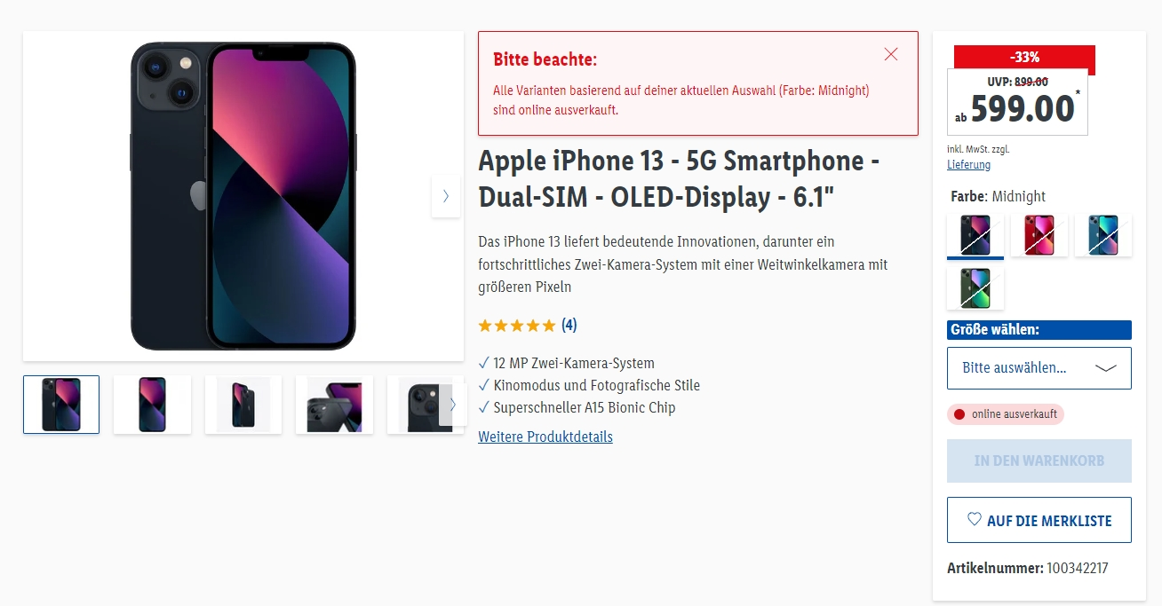 Każdy wariant zdążył się już wyprzedać i trudno wyszukać urządzenia ze względu na „zbyt duży popyt”. Nic dziwnego, trudno zgarnąć iPhone’y za taką cenę. Lidl najwyraźniej podjął dobrą i opłacalną decyzję.