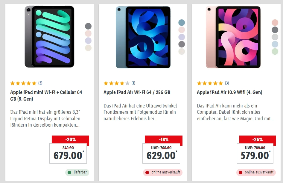 - iPad Air 10.9 4. gen. za 579 euro.