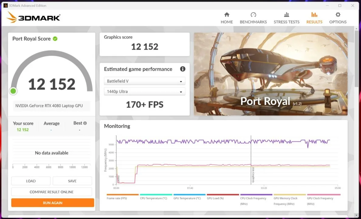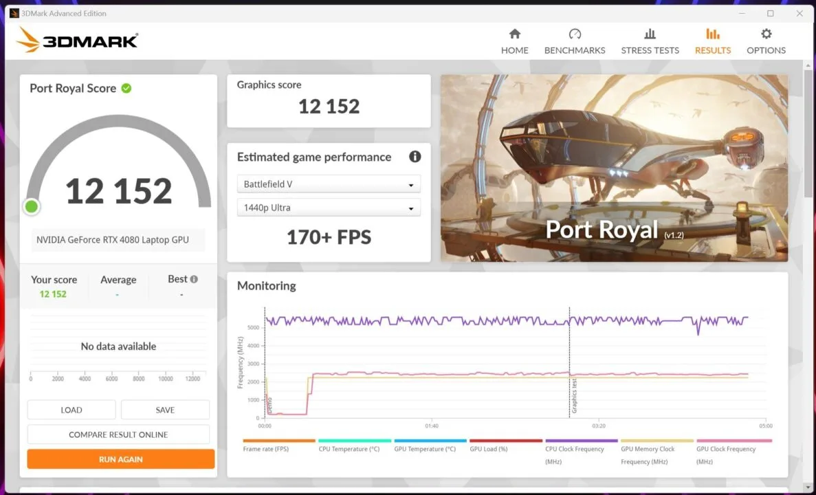 - 3DMark (Port Royal) – 12151 punktów