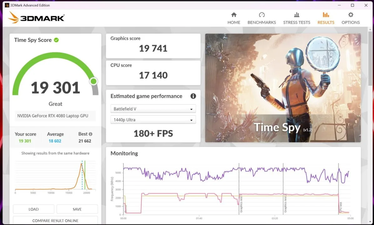 - 3DMark (Time Spy) – 19301 punktów
