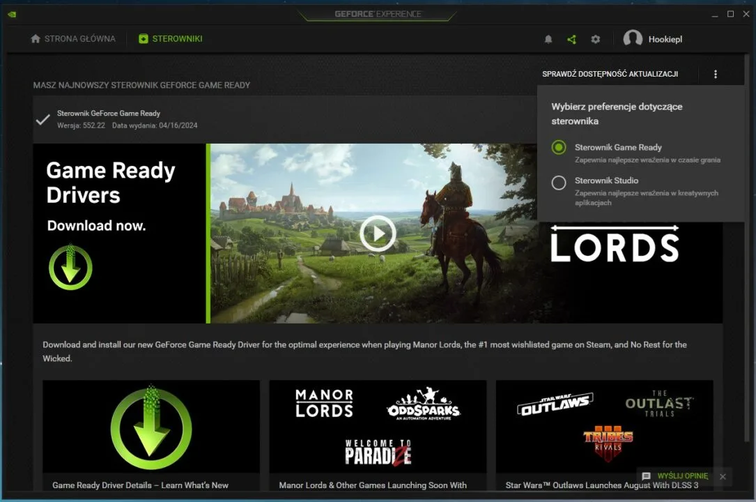 To oczywiście nie koniec. Kupując laptopa z kartą graficzną od NVIDIA dostaje się cały pakiet darmowych rozwiązań, znacząco poprawiających doznania płynące z jego użytkowania. Brzmi banalnie i ogólnikowo, zatem czas na konkrety. Pierwszym z nich jest wygodne i wszechstronne oprogramowanie NVIDIA App / NVIDIA GeForce Experience oraz sterowniki. NVIDIA za pośrednictwem obu tych aplikacji oferuje sterowniki GeForce Game Ready, optymalizowane pod kątem niezawodności w grach oraz osobny pakiet sterowników NVIDIA Studio, przygotowywany z myślą o aplikacjach dla profesjonalistów. Przełączanie się pomiędzy nimi trwa krótką chwilę. Te pierwsze zwiększają wydajność w grach, te drugie natomiast maksymalizują moc obliczeniową i gwarantują stabilność działania twórcom, artystom, programistom i innym osobom pracującym.