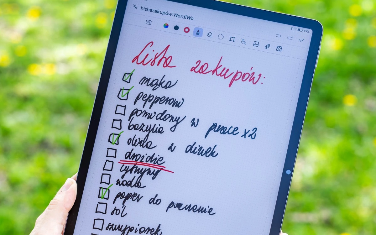Jak widać, Huawei MatePad 11.5 PaperMatte Edition dzięki swojemu matowemu ekranowi jest po prostu przyjemniejszy w użytkowaniu niż tablety z ekranami błyszczącymi, a to przekłada się na jego wyższą wszechstronność. Z tabletu Huawei MatePad 11.5 PaperMatte Edition możemy wygodnie korzystać zarówno w pomieszczeniach, jak i na zewnątrz oraz wszędzie tam, gdzie może towarzyszyć nam intensywne oświetlenie. Gdy korzystałam z niego ja, nie straszne mu było ostre wiosenne słońce, które świeciło na niebie w ostatnich, zaskakująco gorących dniach.