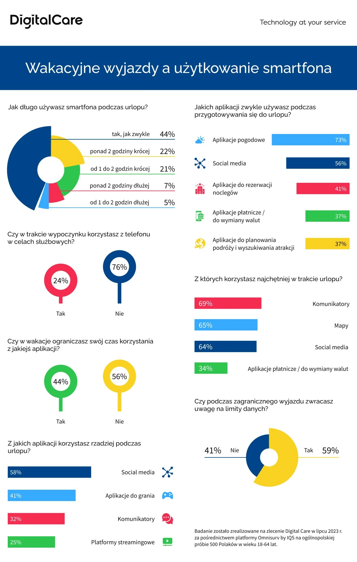 Z drugiej strony, coraz częściej używany przeróżnych aplikacji, by odpowiednio przygotować się do wakacyjnego wyjazdu. 2/3 z nas regularnie zagląda do aplikacji pogodowych, a 41 procent z pomocą aplikacji rezerwuje nocleg. Chętnie sięgamy też do aplikacji płatniczych, aplikacji do wymiany walut, aplikacji do wyszukiwania atrakcji, aplikacji do zamawiania środków transportu oraz takich do planowania podroży.