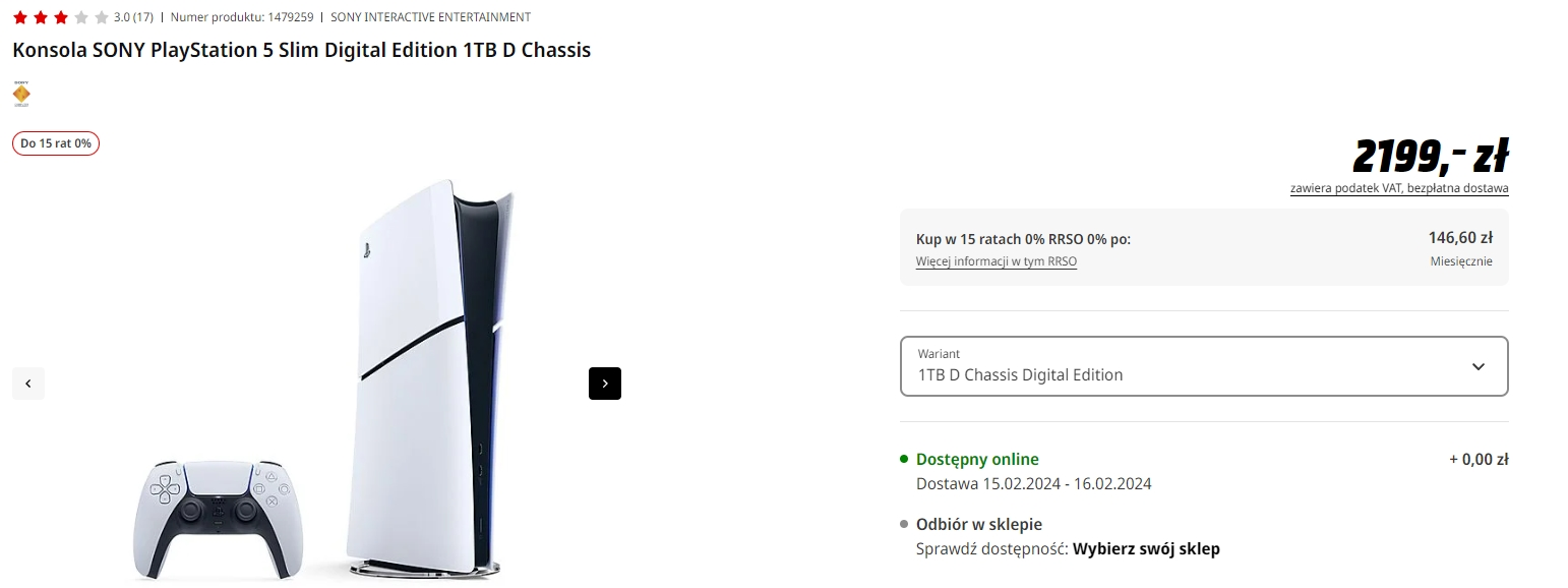 - Media Markt – wersja z napędem (2339 zł), wersja digital (2199 zł),
