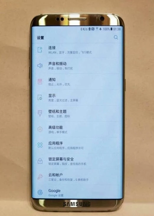 Grafika pojawiła się w serwisie Slashleaks. Widać na niej Galaxy S8 w metalicznej złotej obudowie oraz charakterystycznymi zakrzywionymi krawędziami ekranu. Zdjęcie potwierdza jednocześnie plany Samsunga dotyczące z rezygnacji z przycisku Home, który został zastąpiony przez logo koreańskiej firmy.