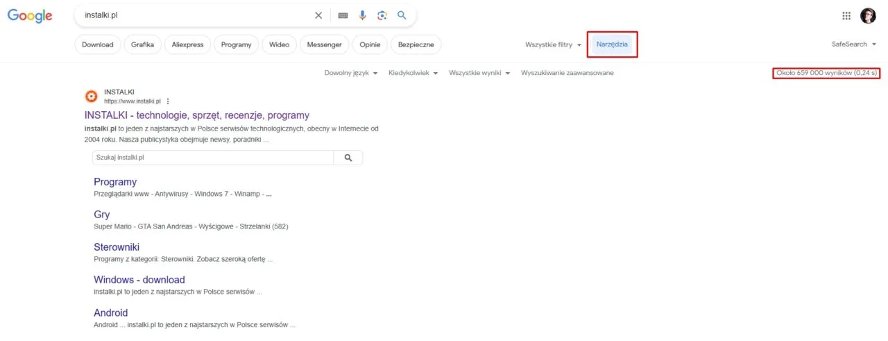 Google na szczęście nie pozbywa się doszczętnie tej kultowej funkcji. Można ją aktywować poprzez kliknięcie przycisku „Narzędzia” – wtedy też ujrzycie klasyczny widok. Nie zmienia to jednak faktu, że domyślnie nigdy już nie ujrzycie liczby wyników wyszukiwania. Czy jednak kiedykolwiek korzystaliście z tej informacji?
