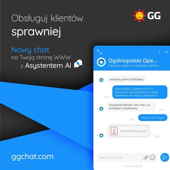Jednym z ciekawszych elementów nowej wersji czatu GG jest możliwość skorzystania z Asystenta AI, który wspiera obsługę klientów. To szczególnie przydatne w sytuacjach, gdy pracownicy firmy nie są dostępni, aby odpowiedzieć na pytania klientów w czasie rzeczywistym. Dzięki technologii sztucznej inteligencji, asystent jest w stanie odpowiadać na standardowe pytania, pomagając w ten sposób zachować ciągłość komunikacji z odwiedzającymi stronę.