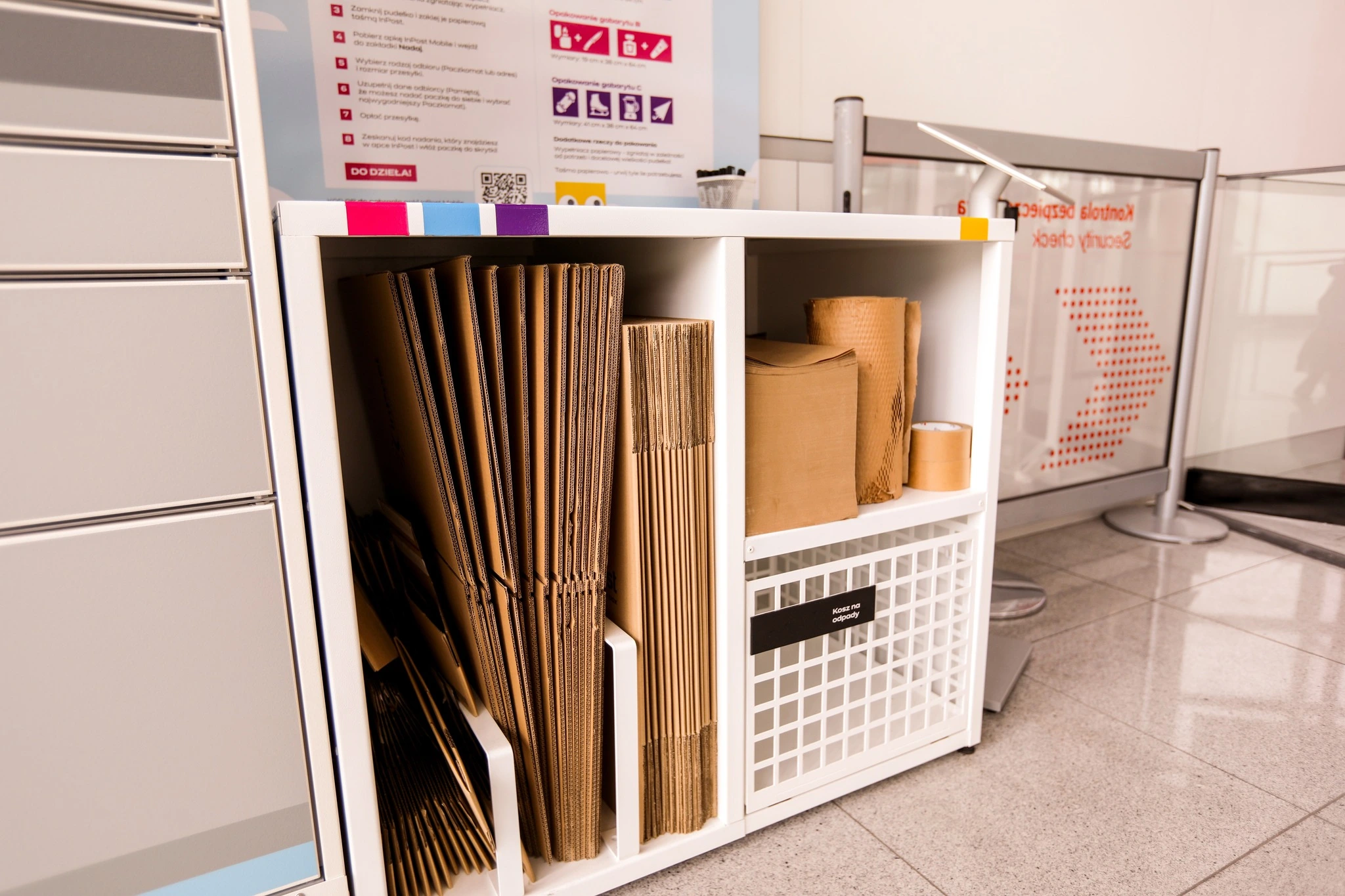 Po przejściu do tego miejsca pasażer może w asyście pracownika lotniska zapakować przedmiot w odpowiedni karton i umieścić go w skrytce. Nadanie przesyłki następuje poprzez aplikację InPost Mobile. Dostępne są opcje wysyłki kurierskiej oraz do innego Paczkomatu.