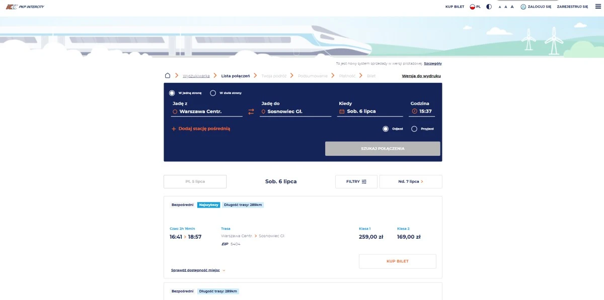 Zrezygnowana działaniem systemu rezerwacji miejsc postanowiłam sprawdzić, czy ten sam problem będzie miał miejsce w przypadku nowego internetowego systemu sprzedaży biletów PKP Intercity – e-IC 2.0. PKP prowadzi obecnie jego beta testy, trwające od kilku miesięcy.
