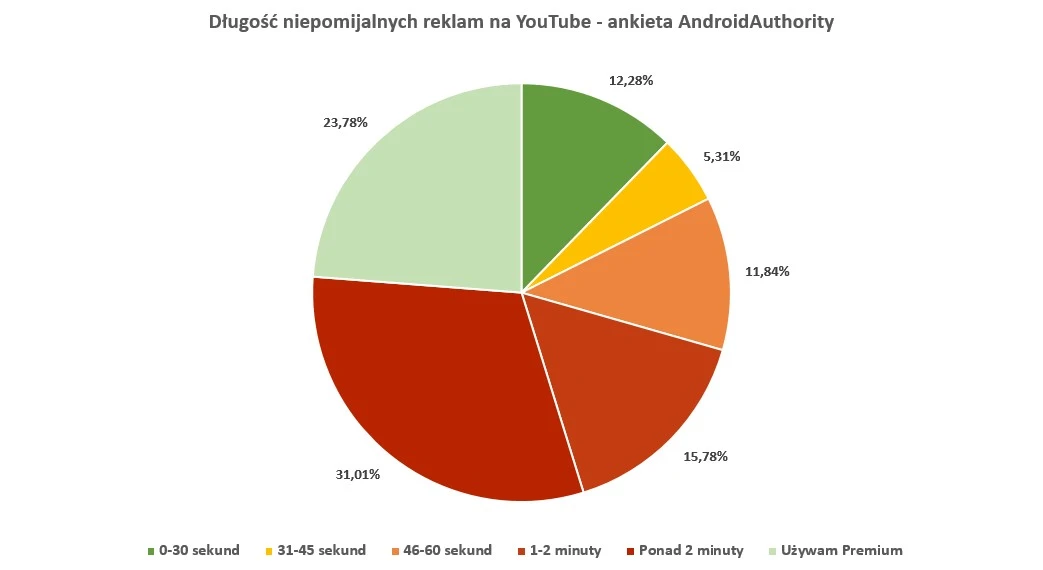 Niepomijalne reklamy wideo na YouTubie systematycznie się wydłużały, osiągając nawet 2 minuty. Świadczy o tym m.in. ankieta AndroidAuthority, przeprowadzona pośród 8600 internautów na początku zeszłego roku. 31% odpowiadających zetknęło się z ponad 2-minutowymi reklamami, 15,8% z reklamami trwającymi 1-2 minut.
