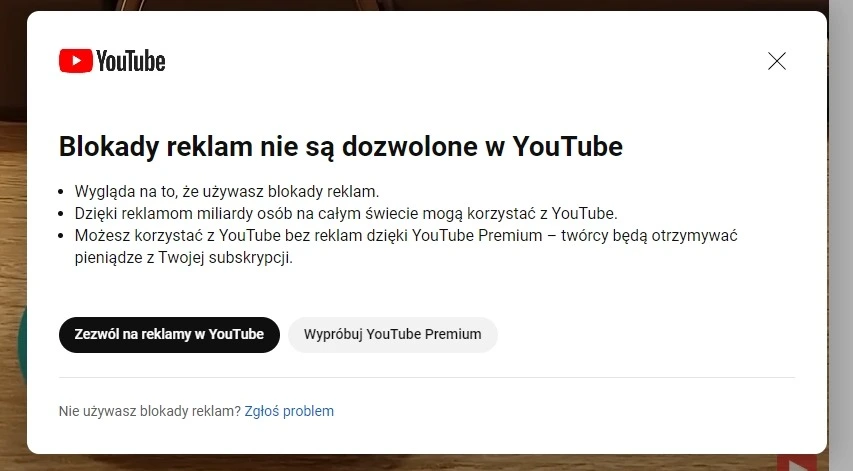 Jeśli więc w najbliższej przyszłości będziecie chcieli obejrzeć coś na YouTube z aktywowanym blokerem reklam, to istnieje ogromne prawdopodobieństwo, że ujrzycie poniższy obrazek: