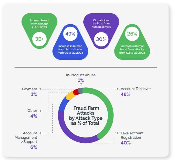Jeśli chodzi o trzeci kwartał 2023 roku, to dominowało pięć kategorii złośliwych działań. Mowa przede wszystkim o przejmowaniu kont, wydobywaniu danych ze stron internetowych (web scraping), tworzeniu fałszywych kont, nadużywaniu produktów oraz zarządzaniu kontami. Tym właśnie zajmują się boty zabierając cenną przestrzeń cyfrową, która mogłaby zostać zagospodarowana w znacznie lepszy sposób.