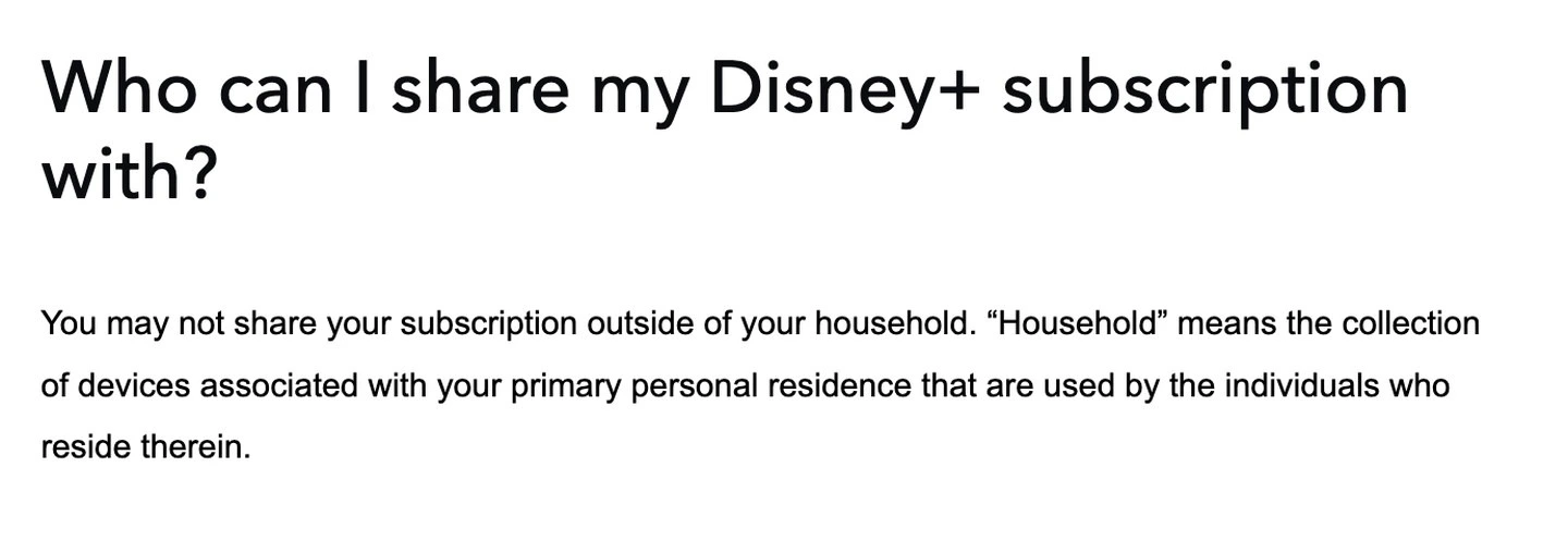 Redakcja kanadyjskiego serwisu MobileSyrup poinformowała, że lokalni subskrybenci Disney+ otrzymali nietypową wiadomość e-mail. Możemy z niej wyczytać, że od 1 listopada zagoszczą ograniczenia dotyczące możliwości udostępniania konta lub danych logowania poza gospodarstwem domowym. Natomiast w zaktualizowanej sekcji pomocy technicznej pojawiła się wzmianka wskazująca na zakaz udostępniania swojego abonamentu poza miejscem zamieszkania.