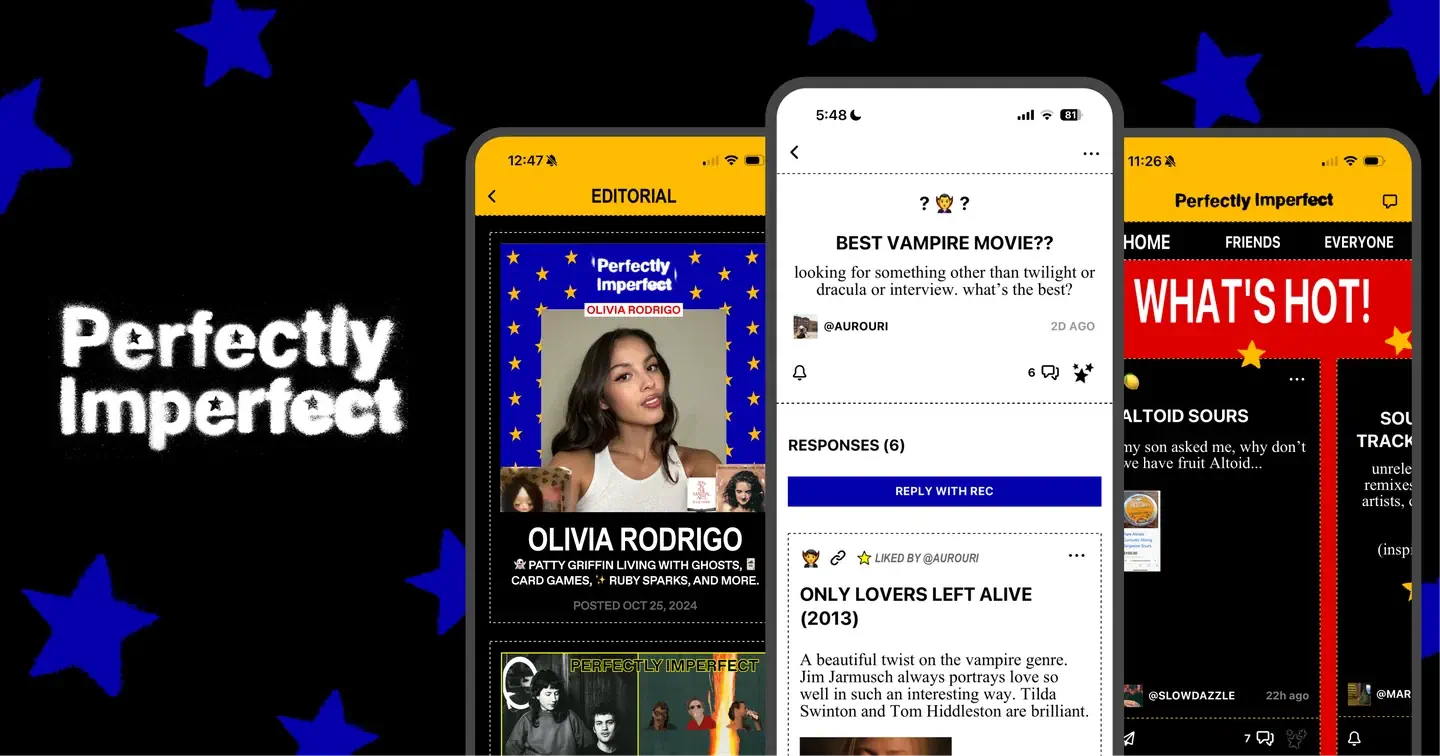 Jeszcze inną drogę obrał projekt Perfectly Imperfect. To połączenie newslettera i sieci społecznościowej, które stawia na ręczną selekcję treści i relacje między użytkownikami. Zamiast nieskończonego przewijania feedu, dostajemy rekomendacje ludzi. To podejście przypomina czasy, gdy internet był miejscem odkrywania kultury, a nie tylko konsumowania szybkich treści. Użytkownicy dzielą się muzyką, filmami czy przemyśleniami, a platforma zachęca do realnych interakcji.