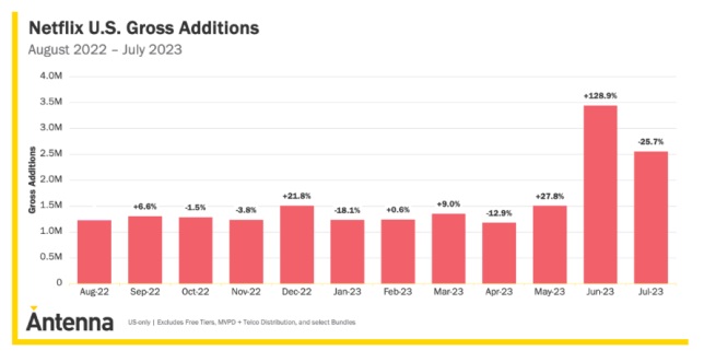 Przedstawione właśnie dane sugerują, iż czerwiec okazał się rekordowy dla Netflixa, przynajmniej na terenie Stanów Zjednoczonych. Tam konto na platformie założyło około 3,5 mln nowych internautów. Równie dobrze wygląda lipiec, kiedy przywędrowało 2,6 mln osób. Liczby te są o tyle znamienne, że jeszcze niedawno z trudem pokonywana była bariera 1,5 mln. Czy więc faktycznie zakaz współdzielenia kont zadziałał?