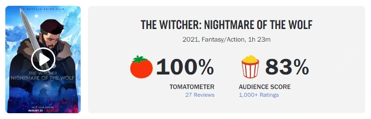 Źródło: Rotten Tomatoes, YouTube (@NetflixPolskaOfficial) / Zdjęcie otwierające: zrzut ekranu z filmu The Witcher: Sirens of The Deep | Zapowiedź | Netflix na YouTube (@NetflixPolskaOfficial)