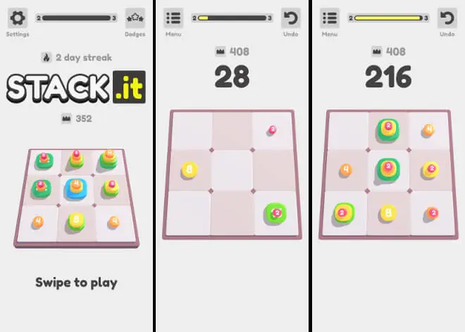 Wariacja na temat popularnej gry 2048. Przesuwamy elementy znajdujące się na planszy – takie same bloki łączą się ze sobą i powiększają wartość liczbową. Elementy mogą także tworzyć stosy.