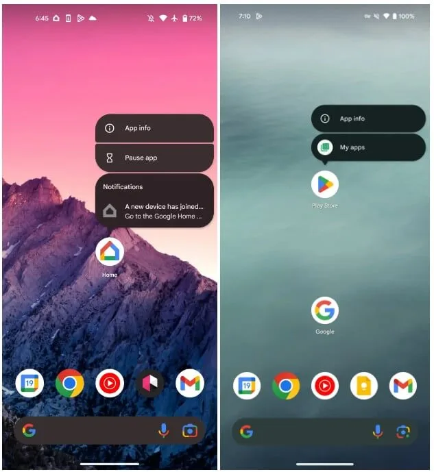 Teraz konsumenci nie są w stanie podejrzeć powiadomień w taki sposób. Obecnie przytrzymanie ikony powoduje wyświetlenie kilku innych opcji – notyfikacje natomiast zostały przeniesione w standardowe miejsce, czyli do wysuwanej listy u góry ekranu. Okej, ale dlaczego?