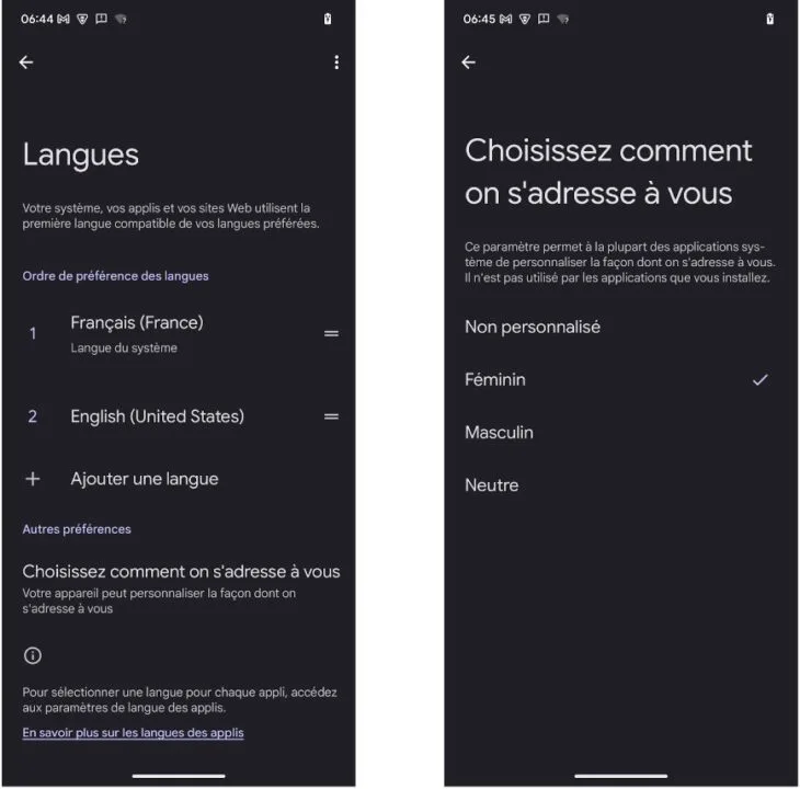 Android 15 wprowadzi możliwość wybrania sposobu, w jaki system ma zwracać się do użytkownika. Każdy otrzyma opcję wskazania czy chce widzieć zaimki męskie, damskie czy neutralne.