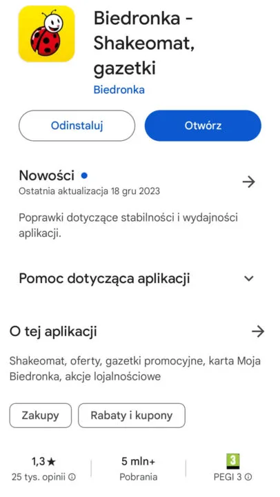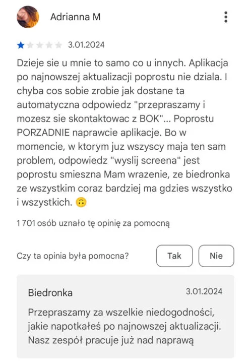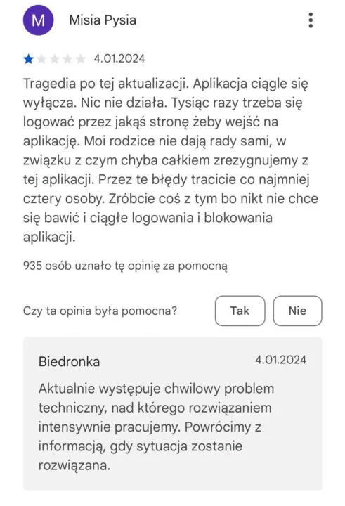Do takich sytuacji raczej nie powinno dochodzić, gdy w grę wchodzi aplikacja największej sieci sklepów w kraju oraz aktualizacja obejmująca swoim zasięgiem praktycznie wszystkich konsumentów.