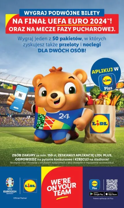 EURO 2024 rozpocznie się już 14 czerwca i potrwa do 14 lipca 2024 roku. Przypominam, że o tytuł Mistrz Europy rywalizowali będą także Polacy, a kolejne takie wydarzenie odbędzie się dopiero za cztery lata. Dzięki najnowszej akcji Lidl Polska osoby robiące zakupy w tych sklepach oraz korzystające z apki Lidl Plus mogą dostać Bilety na EURO 2024 za darmo. Do wygrania jest 50 pakietów wyjazdowych – każdy dla dwóch osób!