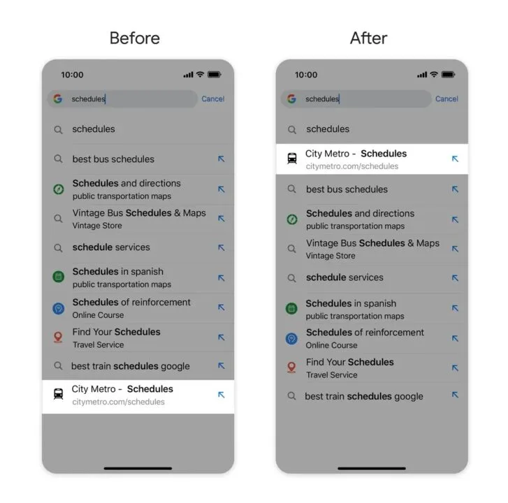 Trzecią nowością są sugestie skrótów, co może być szczególnie przydatne podczas rutynowego szukanie określonej frazy. Google podaje przykład wpisywania słów „rozkład jazdy” – zazwyczaj odwiedzana strona pojawi się na samej górze listy, co oszczędzi konieczności zaglądania do sekcji zakładek czy przechodzenia przez pojedyncze kroki na docelowej witrynie. Brzmi bardzo przyjemnie, prawda?