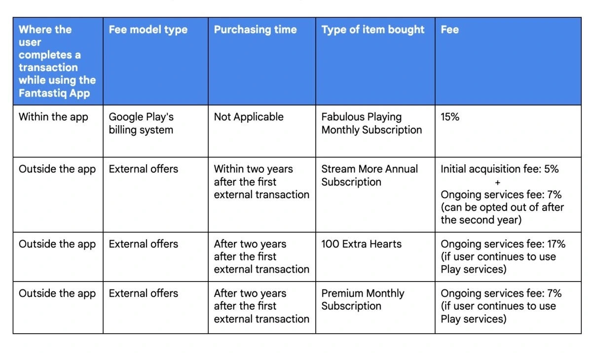 Dlatego też Google twierdzi, że dwie nowe opłaty wprowadzane w ramach systemu External Offers mają bardzo dużo sensu. Są one bowiem bezpośrednio powiązane z płatnościami:
