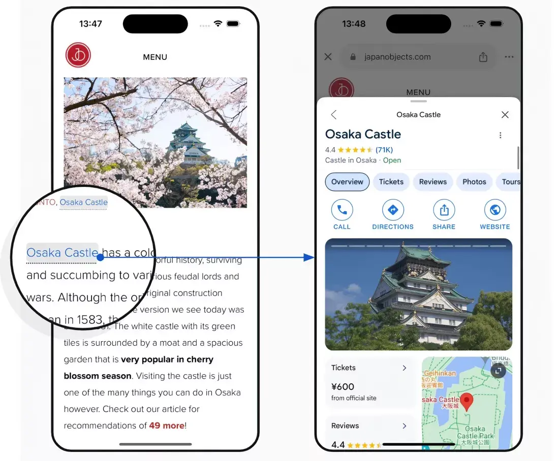 Pomysł, jak zauważa Google na swoich stronach pomocy technicznej, polega na tym, aby użytkownicy smartfonów iPhone „szybko uzyskiwali dodatkowy kontekst dotyczący ludzi, miejsc lub rzeczy – bez opuszczania witryny, w której się znajdują”. Domyślacie się, że nie każdemu się to podoba.