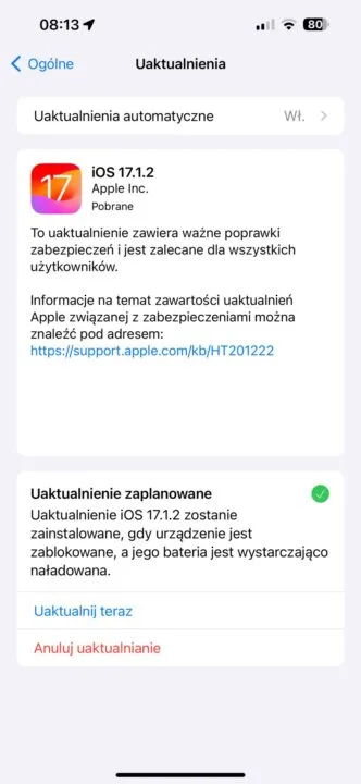 Apple bez robienia większych zapowiedzi udostępniło aktualizację iOS 17.1.2 dla wspieranych smartfonów iPhone. Równolegle zadebiutował iPadOS 17.1.2, skierowany na tablety iPad. Aktualizacja nie przynosi żadnych rewolucyjnych, ani nawet drobnych widocznych zmian. Mimo to należy ją pilnie zainstalować.