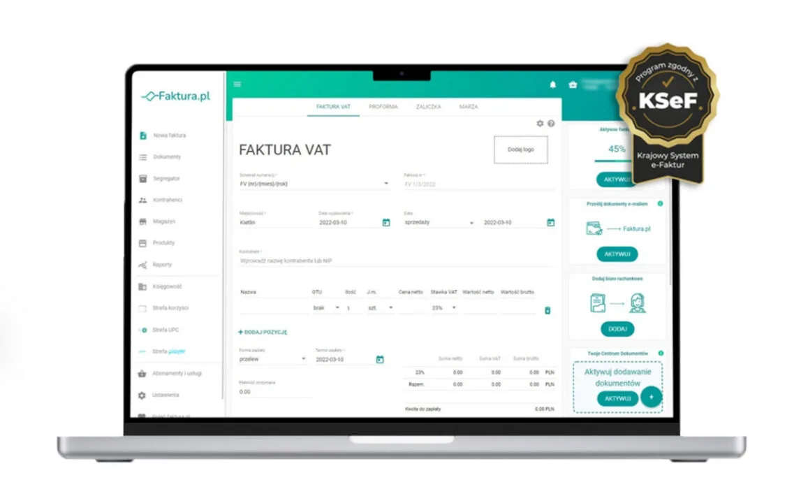 Z tego względu najlepszym podejściem jest wybór oprogramowania, które już teraz wspiera standardy KSeF. Takie narzędzia, jak Faktura.pl, zapewniają pełną zgodność z nowymi wymogami i pozwalają spokojnie przygotować się na nadchodzące zmiany. Korzystając z takich rozwiązań już dziś, przedsiębiorca zyskuje przewagę: unika kosztownych błędów i zyskuje pewność, że proces fakturowania przebiega w sposób uporządkowany, bez konieczności wprowadzania awaryjnych korekt tuż przed wejściem przepisów w życie. Co więcej, taka wcześniejsza adaptacja technologiczna często idzie w parze z lepszą organizacją pracy, większą automatyzacją i oszczędnością czasu w codziennym zarządzaniu dokumentami księgowymi.
