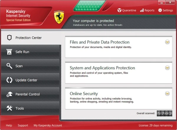 Okno główne Kaspersky Internet Security Special Ferrari Edition